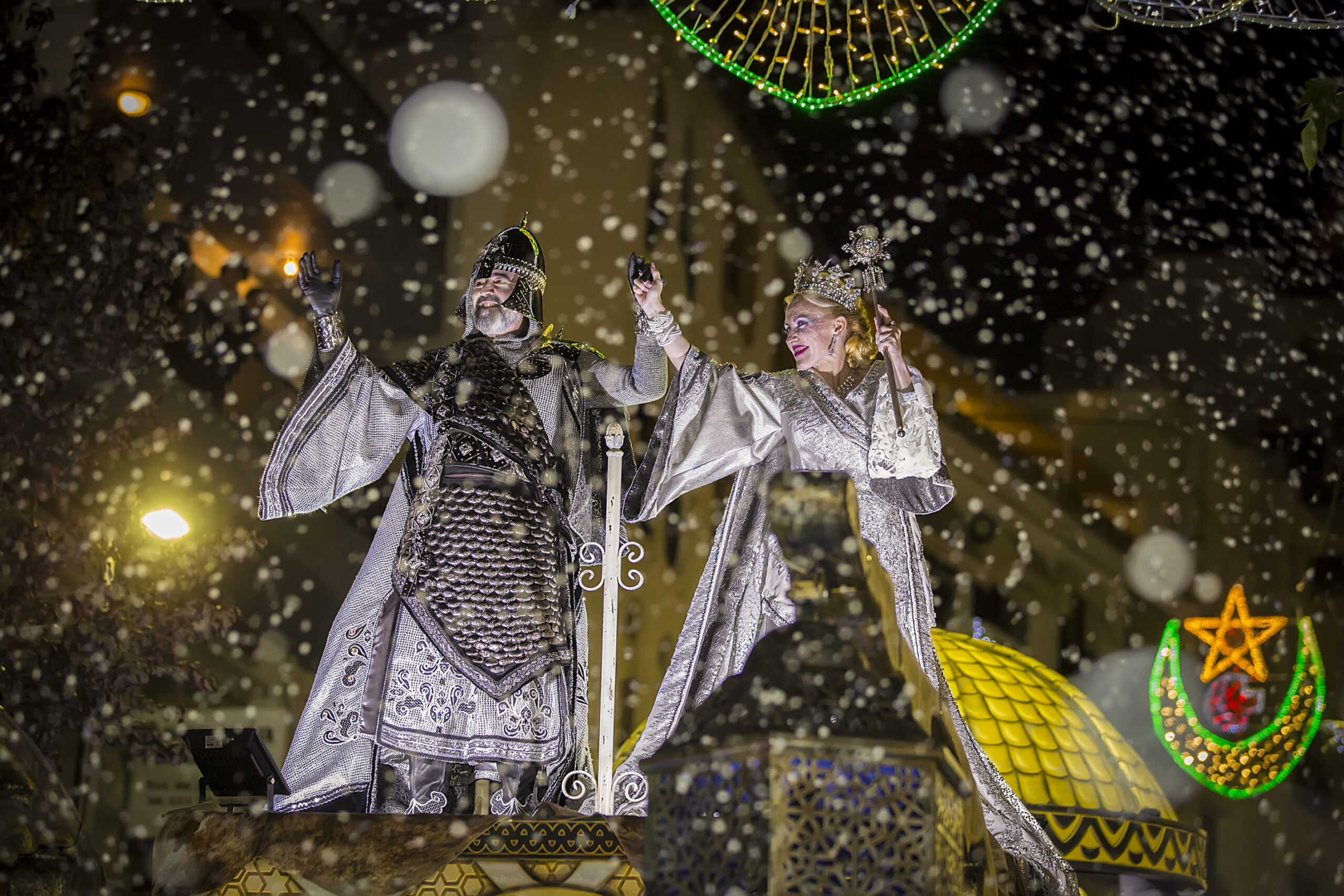 El acto más espectacular de las fiestas de Moros y Cristianos de Calpe, donde cada filà muestra sus trajes, bandas y coreografías en un recorrido lleno de luz, sonido y emoción, encabezado por capitanes y abanderados.