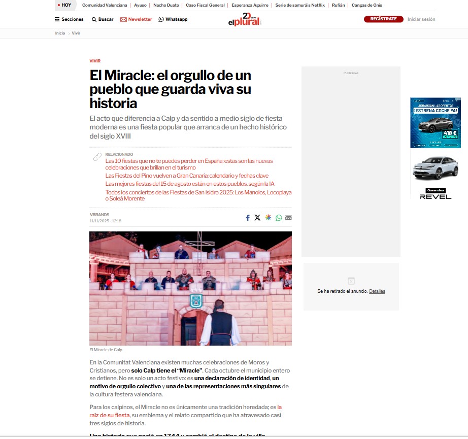 1ca7b74018f2c472cc2e30d46f277aec difusioncomunicacion wrote a new post https://morosycristianos.calpe.es/?p=2720 Wed, 12 Nov 2025 14:15:50 +0100 El Miracle of Calp: when a town unites around its historyEvery October, Calp’s Plaza Mayor is transformed into the setting for El Miracle, the most […]
